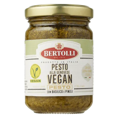 Elke streek, stad en dorp heeft zijn eigen specialiteiten, maar de meest bekende pesto is een traditionele saus uit Liguria. De naam, pesto Genovese, is dan ook vernoemd naar de stad waar het vandaan komt Genua. Onze Pesto alla Genovese Vegan is hierop gebaseerd maar dan helemaal veganistich. Bertolli Pesto alla Genovese Vegan is een heerlijke pesto die is bereid met basilicum, pijnboompitten en olijfolie. Deze smaken komen goed tot hun recht in marinades, dressings, als spread op brood of in een heerlijk pastagerecht. Pesto komt van het woord ‘pestare’ wat stampen betekent. Dit verwijst naar de traditionele manier om de pesto fijn te maken met een vijzel, ofwel stampen. Tegenwoordig kan het ook met de keukenmachine gemaakt worden maar als je toch de tijd neemt om het zelf te maken, gebruik dan een vijzel voor een meer aromatischere pesto.