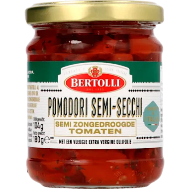Bertolli wil al het goede uit de Italiaanse keuken toegankelijk maken. Pomodori Semi-Secchi/Semi-Zongedroogde tomaten op olie is onderdeel van een range Italiaanse groenten. Met deze nieuwe range Semi-zongedroogde tomaten kleed je in een handomdraai je salade, Italiaanse borrelplank of pizza aan.