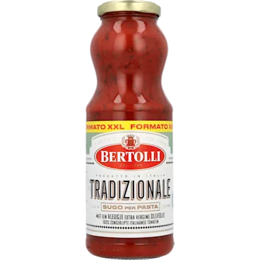 Bertolli Tradizionale Pastasaus is een kant-en-klare saus met kruiden, op basis van een traditioneel Italiaans recept die eigenlijk overal in Italië gebruikt wordt en erg veelzijdig is. De tomatensaus is gemaakt met natuurlijke ingrediënten, 648 gram zorgvuldig geselecteerde Italiaanse tomaten en een vleugje extra vergine olijfolie voor een heerlijke smaak. Met Bertolli Tradizionale Pastasaus zet je in korte tijd een smaakvolle Italiaanse maaltijd op tafel. Alleen ingrediënten van de beste kwaliteit zorgen voor de lekkerste smaken van de producten. Daarom worden de pastasauzen van Bertolli bereid met zongerijpte Italiaanse tomaten. Voor de perfecte smaak, geur en kleur van de tomaten letten de boeren op een aantal hele belangrijke zaken, zoals: de juiste eigenschappen van de tomaat, de juiste hoeveelheid water, nutriënten en gewasbeschermingsmiddelen en worden ze geplukt tijdens het oogstseizoen.