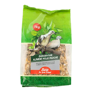 | Duivenvoer kopen? Bestel direct in onze webshop | duivenvoer-1000-gram | Het duivenvoer voorziet je duif van een volledige voeding. In deze duivenvoeding zijn verschillende vogelzaden samengebracht in èèn heerlijke afwisselende mix.Alleen de beste graanstoffen uit de natuur worden voor dit voer gebruikt. Omdat de vogelzaden worden verpakt onder beschermde atmosfeer wordt geur en smaak optimaal behouden.Met het duivenvoer van Best for your Friend kies je voor kwaliteit en het beste voor duiven! | Met het duivenvoer van Best for your Friend kies je voor kwaliteit. Het voer bevat alle voedingsstoffen die een duif nodig heeft. |