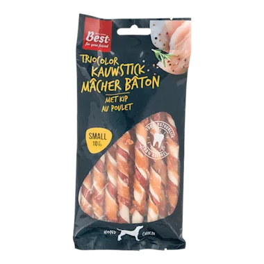 Samenstelling: • Runderhuid • Kip (12,5%) • Sorbitol • Glycerine • Potassium sorbate • Propyleen glycol • Zout (0,5%)