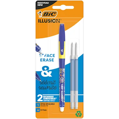 BIC Illusion uitwisbare gelpen en navulling met medium punt (0,7 mm) - diverse kleuren, blisterverpakking van 1+2