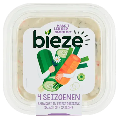 Ingrediënten: komkommer 35%, raapolie, SELDERIJ 13%, water, wortel 7%, prei 5%, ui 4%, suiker, azijn, maïszetmeel, scharrelEIgeel, kruiden en specerijen, zout, MOSTERDzaad, dextrose, voedingszuur: citroenzuur, verdikkingsmiddel: guarpitmeel/xanthaangom, zoetstof: sacharinen, conserveermiddel: E202/E211.