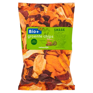 Biologische groentechips van wortel, pastinaak, rode biet en zoete aardappel