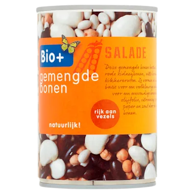 Deze gemengde bonen bestaan uit rode kidneybonen, witte bonen en kikkererwten. Ze vormen de ideale basis voor een veelkleurige salade. Meng voor een eenvoudige bonensalade olijfolie, citroensap, peterselie, peper en zout door de uitgelekte bonen.