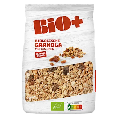 Ingrediënten :TARWEVLOKKEN*, HAVERVLOKKEN*, GERSTEVLOKKEN*, ROGGEVLOKKEN*, 8% rozijnen (rozijnen*, zonnebloemolie*), TARWESTROOP*, rietsuiker*, zonnebloemolie*, TARWEBLOEM*, TARWEZEMELEN*.