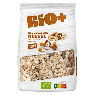 Ingrediënten :TARWEVLOKKEN*, 22% rozijnen* (rozijnen*, zonnebloemolie*), HAVERVLOKKEN*, GERSTEVLOKKEN*, ROGGEVLOKKEN*, 5% gedroogde abrikozenstukjes* (abrikozenstukjes*, rijstmeel*), 5% zonnebloempitten*, 1,5% HAZELNOTEN*, 1% AMANDELEN*, 1% gedroogde appel*.