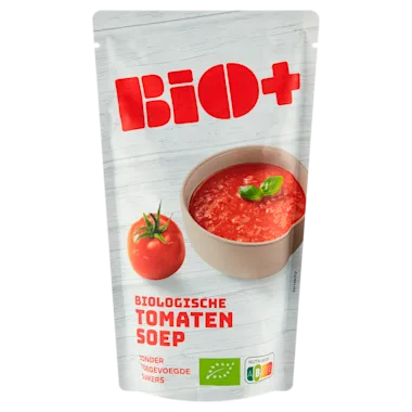 Ingrediënten :47% gezeefde tomaten*, water, 10% tomatenblokjes*, 4% geconcentreerde tomatenpuree*, raapzaadolie*, wortel*, ui*, gistextract, rijstmeel*, zout, natuurlijk aroma, kruiden* (SELDERIJ), specerijen*, citroensapconcentraat*. *Van biologische oorsprong.