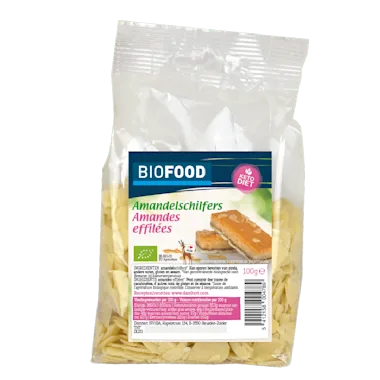 AMANDELschaafsel*. Kan sporen van NOTEN, GLUTEN, SESAM en PINDA bevatten. *Van gecontroleerde biologische teelt.