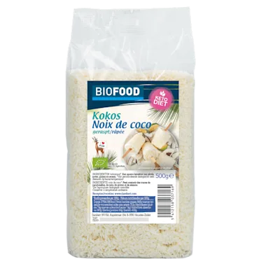 Kokos geraspt is de ideale afwerking om aan verschillende nagerechten een subtiele kokos toets te geven. Ook makkelijk te verwerken in jouw biologisch ontbijt zoals muesli, smoothie, shakes, energy balls, granola, …