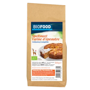 volkoren SPELTmeel** (bevat GLUTEN). **Van gecontroleerde biologische teelt.