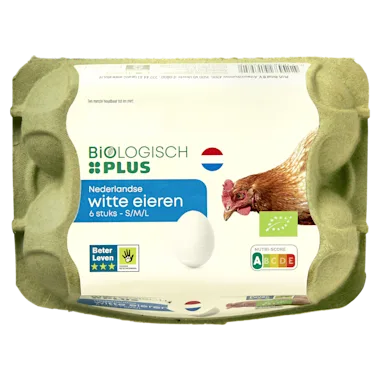 Biologische witte eieren van verschillend formaat minimaal 270 gram, klasse A
