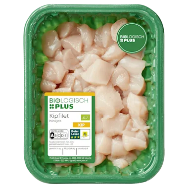 Biologisch PLUS kipfiletblokjes 250g