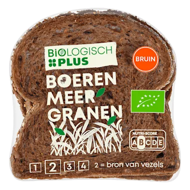 Ingrediënten :Ingrediënten: 27% VOLKORENTARWEMEEL*, water, 22% TARWEBLOEM*, TARWEGLUTEN*, zonnebloempitten*, bakkersgist, lijnzaad*, 2,6% HAVERVLOKKEN*, 2,5% moutmeel (GERST*, TARWE*), 1,3% speltbloem* (TARWE), 1,3% ROGGEVLOKKEN*, bakkerszout, SESAMZAAD*, plantaardige oliën (raapzaad*, zonnebloem*), 0,6% gierst*, suiker*, gebrande suiker*, 0,4% TARWEGRIES*, 0,3% GERSTEVLOKKEN*, 0,2% maïsgries*, 0,2% rijstevlokken*, meelverbeteraar: E300, enzym (TARWE). * van biologische oorsprong Kan sporen bevatten van: ANDERE GLUTENBEVATTENDE GRANEN, EI, SOJA, MELK, NOTEN en LUPINE.