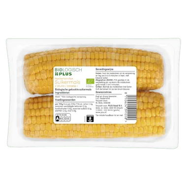 Koken: haal de maïskolven uit de verpakking en leg ze circa 5 minuten in heet, niet kokend water.