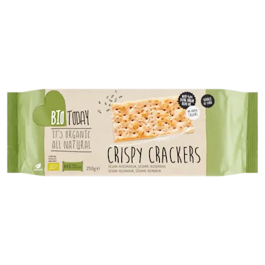 Ingrediënten: TARWEbloem*, extra vergine olijfolie* 9,8%, SESAMZADEN* 2,5%, zout 1,5%, zuurteregelaar: natriumbicarbonaat, rozemarijn* 0,6%, zuurdesem* (TARWE en GERST)*, gemoute GERSTmeel*, gist*, antioxidant: rozemarijnextract*, *=biologisch