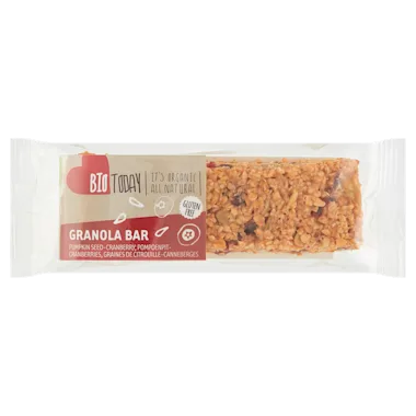 ingrediënten: havervlokken* (glutenvrij) 47%, honing*, pompoenpitten* 13%, cranberries* 12%, zonnebloemolie*, zout, kaneel*. *=biologisch. kan sporen bevatten van: eieren, soja, melk, noten, sesamzaad, lupine.
