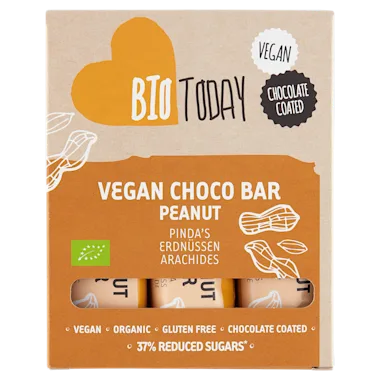Ingrediënten: Rijststroop*, chocolade* 20% (cacaomassa, kokosbloesemsuiker, cacaoboter)*, gedehydrateerde maïssiroop*, PINDA'S* (AARDNOTEN) 14%, karamel* (kokossiroop, kokoscrème, zeezout)*, SOJAmeel*, rijstpoeder* (gedroogde rijstsiroop, rijstzetmeel, rijstbloem)*, cacaoboter*, *=biologisch.
