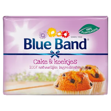 150g Blue Band Cake & Koekjes, 150g suiker, 3 eieren, 150g zelfrijzend bakmeel, ±10 papieren bakvormpjes.