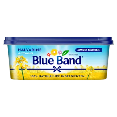 Blue Band halvarine is 100% plantaardig en gemaakt met plantaardige oliën, zoals zonnebloem-, koolzaad- en lijnzaadolie. Deze bevatten goede vetten die je alleen via de voeding binnen kan krijgen en belangrijk zijn voor de groei en ontwikkeling van