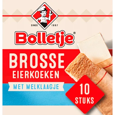 Wij staan voor bakmanschap. Dat is bakken met hart, ziel en mooie ingrediënten. Deze brosse eierkoeken bakken we met vrije-uitloopeieren. We hebben het beslag extra luchtig geklopt, waardoor deze eierkoeken heerlijk bros zijn. We geven ze een melklaagje en bestrooien ze met suiker om ze nog lekkerder te maken. / Bron van vezels. Meer info over (voedings)vezels vind je op www.bolletje.nl/vezels. / Kijk voor meer allergeneninformatie op www.bolletje.nl.