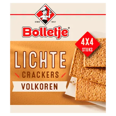 100% volkoren / Deze Lichte Crackers zijn gemaakt van 100% volkoren tarwe. Zo zitten ze boordevol smaak en bevatten extra veel vezels. Dat maakt ze niet alleen lekker, maar ook lekker voedzaam. / Kijk voor meer allergeneninformatie op www.bolletje.nl.