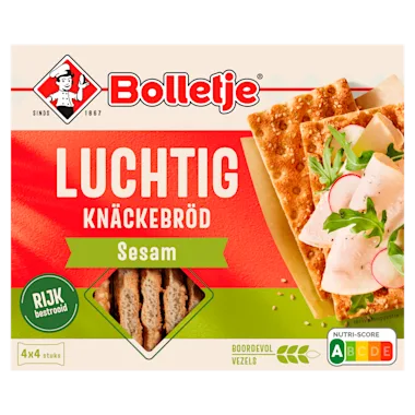 Rijk bestrooid / Bolletje knäckebröd is bereid met ingrediënten van natuurlijke oorsprong. Het bevat dus geen kunstmatige kleur-, geur- en smaakstoffen. / Luchtig Knäckebröd Sesam is extra bros en luchtig gebakken. Hierdoor eet het lekker makkelijk weg. En de rijke sesambestrooiing maakt het extra smaakvol! / Kijk voor meer allergeneninformatie op www.bolletje.nl.