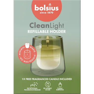 CleanLight is een houder van dubbelwandig glas voor refill geurkaarsen. Kies de refill in jouw favoriete geur, plaats in de houder en geniet steeds opnieuw van een onweerstaanbare geurbeleving. Omdat de refill volledig opbrandt tot de laatste druppel wax houd je weinig afval over: vriendelijk voor de planeet én voor je portemonnee. Ben je klaar voor een nieuwe geurbeleving? Dan vervang je heel eenvoudig jouw refill voor een nieuwe!