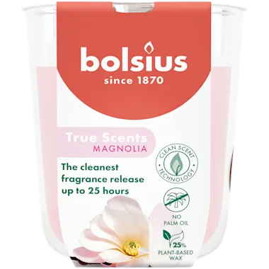 De roze Bolsius Magnolia geurkaars in klein formaat zit in een helder glas en brandt tot wel 25 uur lang. Magnolia is een natuurlijke, klassieke geur: bloemig en zoet, als een warme, zwoele zomeravond! Gemaakt met behulp van CleanScent technologie garanderen we de puurste geurervaring en de schoonste geurafgifte.