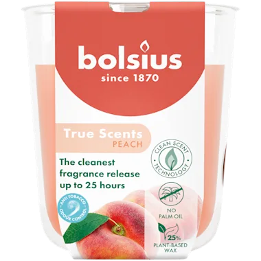 De zacht oranje Bolsius Perzik geurkaars in klein formaat zit in een helder glas en brandt tot wel 25 uur lang. Geniet van de oppeppende geur van fruitige perzik; ontwikkeld met de Freshplex™ technologie die de geur van tabak neutraliseert. Gemaakt met behulp van CleanScent technologie garanderen we de puurste geurervaring en de schoonste geurafgifte. Ervaar de pure geurbeleving van fruitige perzik bij jou thuis.