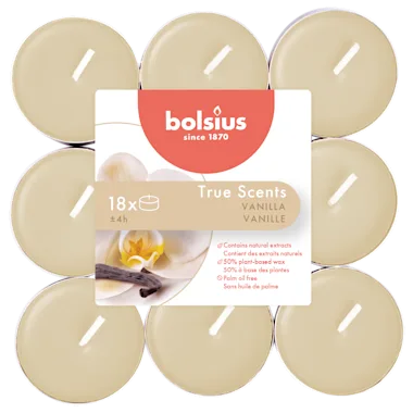 What you see is what you smell! The ivory white Bolsius Vanilla tea lights burn for up to 4 hours. Create a wonderful homely feeling with this enjoyable, creamy fragrance! It is made with love for people and planet, with natural extracts, vegan wax and zero palm oil. Experience the pure fragrance of soft vanilla within the comfort of your own home.