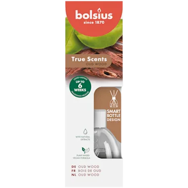 Geniet van een langdurige geurbeleving met de True Scents geurstokjes in de geur Oud Wood. Het slimme design van het flesje zorgt voor de perfecte plaatsing van de drie geurstokjes. Door de combinatie met de geoptimaliseerde vegan formule verspreiden deze geurstokjes hun heerlijke geur tot wel 6 weken lang. Het donkere en warme Oud (spreek uit: oet) heeft een rokerig, houtachtig parfum voor een sensuele geurbeleving. Ervaar de warme geurbeleving van Oud Wood bij jou thuis.