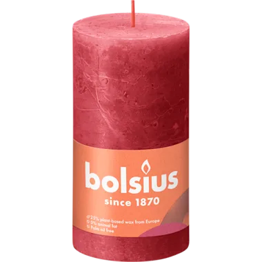 Make every moment a special one! The natural light of candles brings a unique warmth and ambience into your home and makes it cosy. Bolsius's rustic pillar candle comes in the dark red tone Delicate Red, boasts a full 13cm in height and burns for a good 60 hours. Made without palm oil, using natural vegan wax - with love for people and planet. Bolsius's collection includes rustic candles in different sizes and in 23 trendy colours, all of which go really well with each other.
