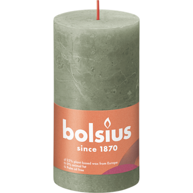 Maak van elk moment een bijzonder moment met onze Bolsius rustieke stompkaars in de olijfgroene kleur Fresh Olive. Deze kaars is 13cm hoog en blijft mooi tot een brandduur van wel 60 uur dankzij onze MaxAmbiance technologie. Deze technologie combineert een unieke wax receptuur met een superdunne lont voor het beste brandresultaat. Gemaakt zonder palmolie en met plantaardige wax. Onze volledige rustieke collectie bevat kaarsen in verschillende formaten en trendy kleuren. Deze kunnen op diverse manieren goed met elkaar gecombineerd worden en zorgen zo voor warmte en sfeer in je huis.