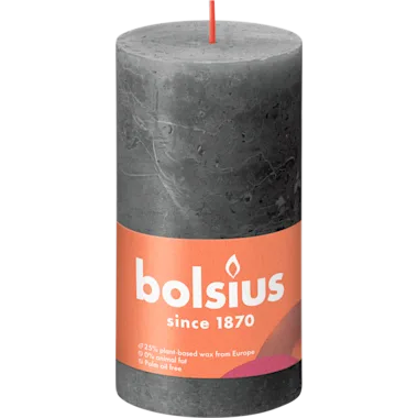 Make every moment a special one! The natural light of candles brings a unique warmth and ambience into your home and makes it cosy. Bolsius's rustic pillar candle comes in the dark grey tone Stormy Grey, boasts a full 13cm in height and burns for a good 60 hours. Made without palm oil, using natural vegan wax - with love for people and planet. Bolsius's collection includes rustic candles in different sizes and in 23 trendy colours, all of which go really well with each other.