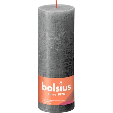 Make every moment a special one! The natural light of candles brings a unique warmth and ambience into your home and makes it cosy. Bolsius's rustic pillar candle coming in the dark grey tone Stormy Grey boasts a full 19cm in height and burns for a good 85 hours. Made without palm oil, using natural vegan wax - with love for people and planet. Bolsius's collection includes rustic candles in different sizes and in 26 trendy colours, all of which go really well with each other.