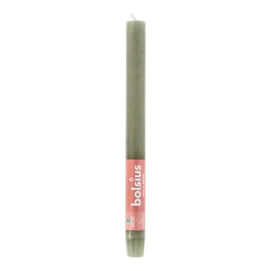Make every moment a special one! The natural light of candles brings a unique warmth and ambience into your home and makes it cosy. Bolsius's rustic dinner candles are in the olive green colour. Fresh Olive are 27cm high, don't drip and burn for a good 13 hours. Made without palm oil, using natural vegan wax - with love for people and planet. Its cotton wick always ensures a perfect flame, without black deposits or smoulder.