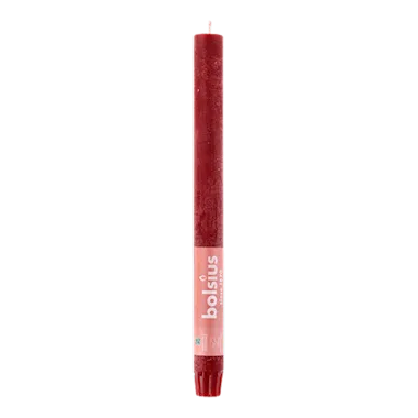 Make every moment a special one! The natural light of candles brings a unique warmth and ambience into your home and makes it cosy. Bolsius's rustic dinner candles are coming in the burgundy tone. Velvet Red boast a full 27cm in height, don't drip and burn for a good 13 hours. Made without palm oil, using natural vegan wax - with love for people and planet. Its cotton wick always ensures a perfect flame, without black deposits or smoulder.