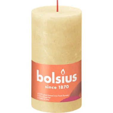 Geniet van warmte, licht en sfeer op winterse avonden thuis! Met de Bolsius Winter Edition rustieke kaars in de trendkleur Oat Beige maak je van elk moment een magisch moment. De kaars is 13cm hoog en brandt tot wel 54 uur.