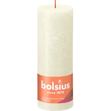 Make every moment a special one! The natural light of candles brings a unique warmth and ambience into your home and makes it cosy. Bolsius's rustic pillar candle coming in the ivory white tone Soft Pearl boasts a full 19cm in height and burns for a good 85 hours. Made without palm oil, using natural vegan wax - with love for people and planet. Bolsius's collection includes rustic candles in different sizes and in 26 trendy colours, all of which go really well with each other.