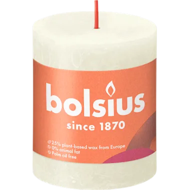 Make every moment a special one! The natural light of candles brings a unique warmth and ambience into your home and makes it cosy. Bolsius's rustic pillar candle coming in the ivory white tone. Soft Pearl boasts a full 8cm in height and burns for a good 35 hours. Made without palm oil, using natural vegan wax - with love for people and planet. Bolsius's collection includes rustic candles in different sizes and in 23 trendy colours, all of which go really well with each other.