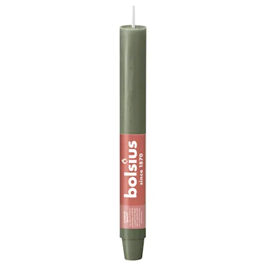 Maak van elk moment een bijzonder moment met onze Bolsius rustieke huishoudkaarsen in de olijfgroene kleur Fresh Olive. Deze kaars is 23cm hoog en blijft mooi tot een brandduur van wel 15 uur dankzij onze MaxAmbiance technologie. Deze technologie combineert een unieke wax receptuur met een superdunne lont voor het beste brandresultaat. Gemaakt zonder palmolie en met plantaardige wax. Onze volledige rustieke collectie bevat kaarsen in verschillende formaten en trendy kleuren. Deze kunnen op diverse manieren goed met elkaar gecombineerd worden en zorgen zo voor warmte en sfeer in je huis.