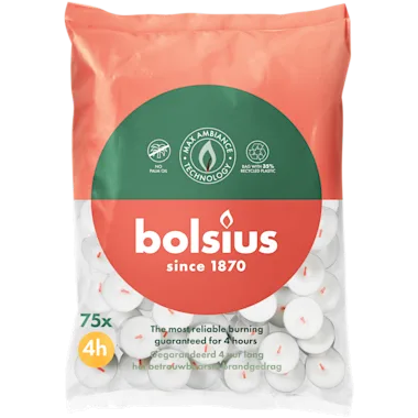 Verhoog de sfeer in je huis met onze theelichten en voeg moeiteloos een vleugje magie toe. Onze superieure kwaliteit staat garant voor 4 uur lang het betrouwbaarste brandgedrag, dankzij de MaxAmbiance-technologie – een unieke mix van de puurste wax en een speciaal gevlochten katoenen lont. Met liefde voor mens en planeet bevatten onze theelichten geen palmolie en gebruiken we 35% gerecycled plastic voor de verpakking. Naast het creëren van een rustgevende sfeer voegen ze een extra touch toe aan je tafel wanneer ze in een theelichthouder worden geplaatst.