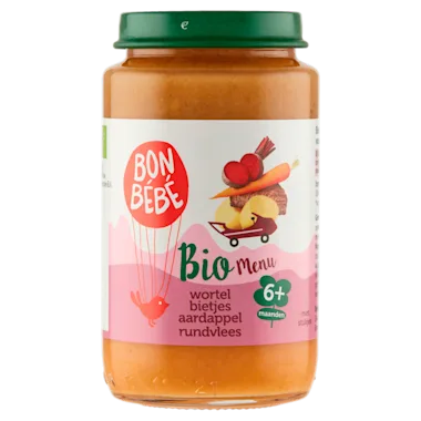 Biologische babyvoeding met aardappel, wortel, bietjes en rundvlees, vanaf 6 maanden
