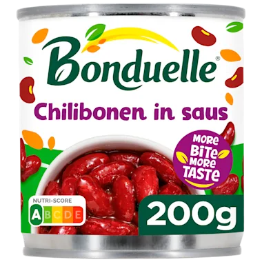 Ingrediënten: Water, rode kidneybonen 45%, dubbel geconcentreerde tomatenpuree 3,7%, suiker, wijnazijn, aroma's (GLUTEN), DIJONMOSTERD (water, MOSTERDZAAD, alcoholazijn, zout), TARWEBLOEM, zonnebloemolie, geleermiddelen: johannesbroodpitmeel, E508, E407, zout, glucose.