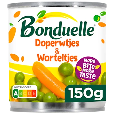 Ingrediënten: Groenten in variabele proporties (doperwtjes, worteltjes), water, zout, natuurlijk aroma.