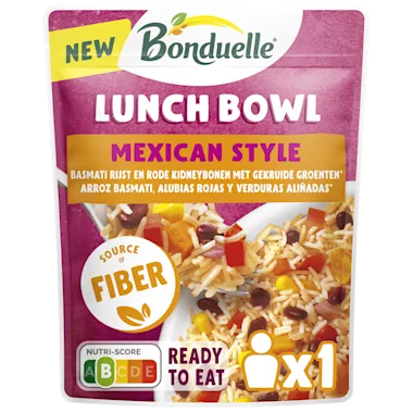Ingrediënten: Water, rode kidneybonen 17%, basmati rijst 15%, gegrilde rode paprika blokjes 13%, zoete aardappel blokjes 9%, maïs 9%, tomaten blokjes 6%, gesneden uien 5%, zonnebloemolie, zout, zoet gerookte chili 0,25%, chilipoeder 0,03%. Kan SOJA, SELDERIJ en GRANEN (GLUTEN) bevatten.