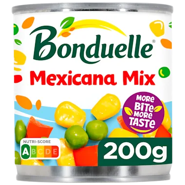 Ingrediënten: Groenten (doperwtjes 38%, maïskorrels 25%, rode paprika 9%), water, zout, natuurlijk aroma.