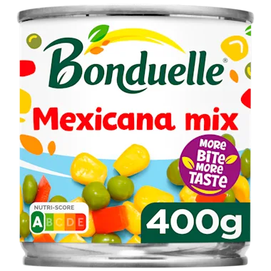 Ingrediënten: Groenten (doperwtjes 38%, maïskorrels 25%, rode paprika 9%), water, zout, natuurlijk aroma.