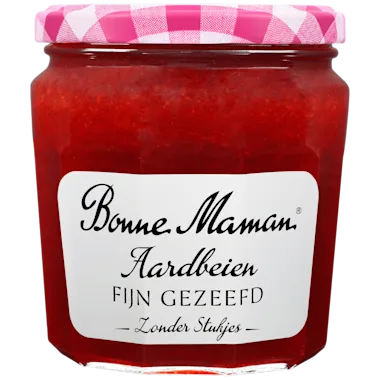 vruchten (aardbeien 48,4%, aalbessen 1,6%), suiker, bruine rietsuiker, geconcentreerd citroensap, geleermiddel: pectinen.